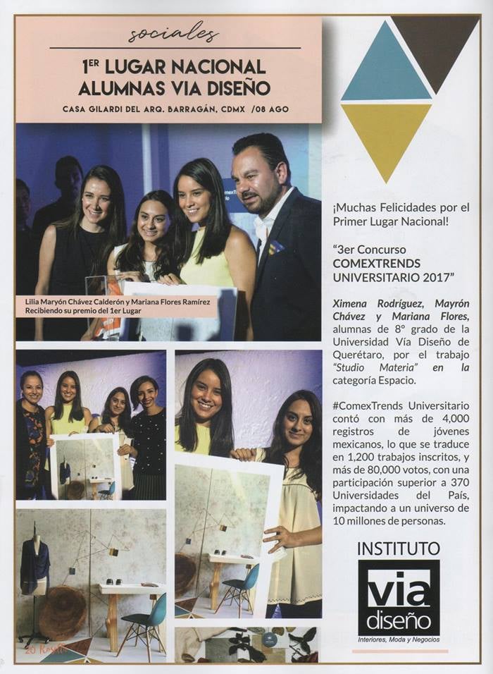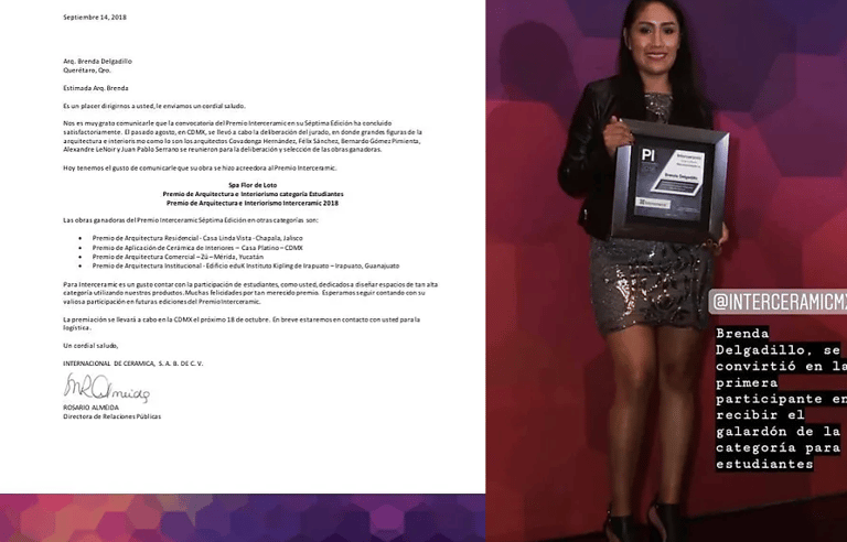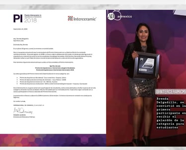 Premio Interceramic abrió la convocatoria para recibir aquellos proyectos arquitectónicos y de interiorismo que por su creatividad, pasión y trabajo merecen ser distinguidos. Donde Brenda Delgadillo, estudiante del INSTITUTO VIA DISEÑO se le otorgó el premio de Interceramic de Arquitectura e Interiorismo a nivel nacional y se convirtió en la primera participante en recibir el galardón de la categoría para estudiantes.